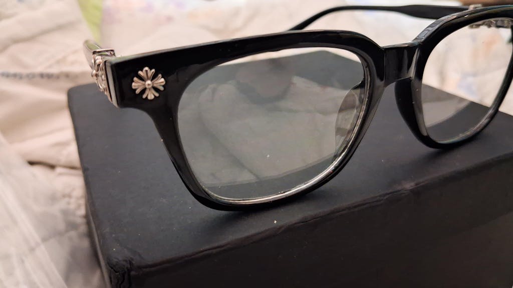 Anonymous I loved the 𝕮𝖍𝖗𝖔𝖒𝖊 𝕳𝖊𝖆𝖗𝖙 glass! It's super stylish and the craftsmanship is top-notch.The frames feel comfy and it suit my face shape perfectly. Only thing is, it's a bit on the pricier side. Would I purchase again? Totally, for the luxe vibe it brings 😎.